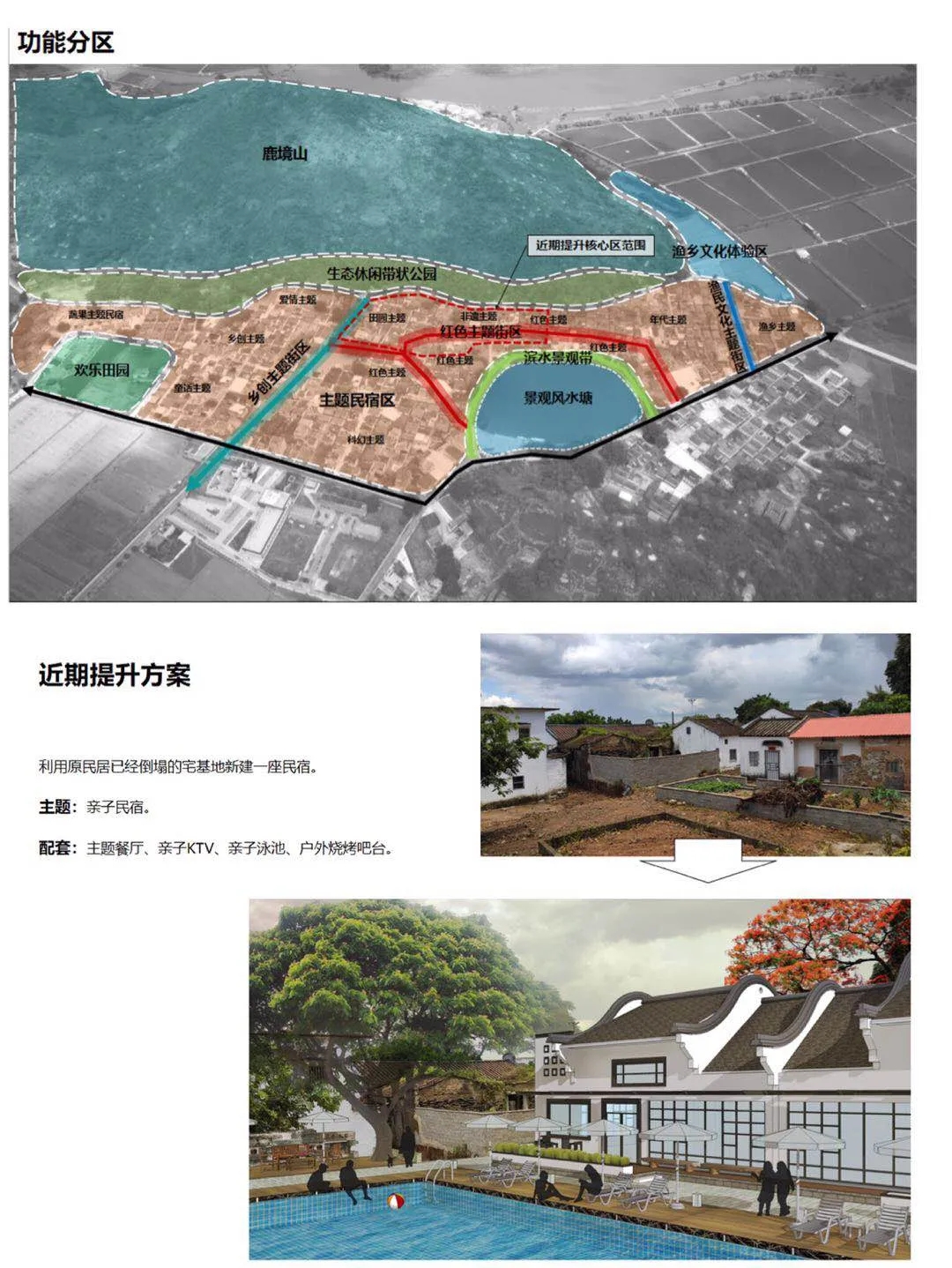 柏深?弘基(深圳)規(guī)劃部的項(xiàng)目團(tuán)隊(duì)對(duì)新山村項(xiàng)目的村莊建設(shè)現(xiàn)狀存在的問(wèn)題:部分建筑質(zhì)量差,需要進(jìn)行修繕改造;部分現(xiàn)代建筑混雜在傳統(tǒng)建筑之中,風(fēng)貌不統(tǒng)一、不協(xié)調(diào);窗戶和門(mén)框缺少特色;村內(nèi)缺乏大量的商業(yè)店鋪、民宿、娛樂(lè)項(xiàng)目等旅游服務(wù)設(shè)施,游客接待能力不足等進(jìn)行分析。最終結(jié)合現(xiàn)狀提出了相應(yīng)的建筑風(fēng)貌:人字坡屋頂 + 黑白灰色調(diào),嶺南風(fēng)情的建筑特色;利用優(yōu)越的區(qū)位條件、良好的村落布局;豐富的生態(tài)文化資源;現(xiàn)代化的美麗鄉(xiāng)村,抓住鄉(xiāng)村振興的政策利好,大力發(fā)展旅游服務(wù),同時(shí)提高村民的收入。